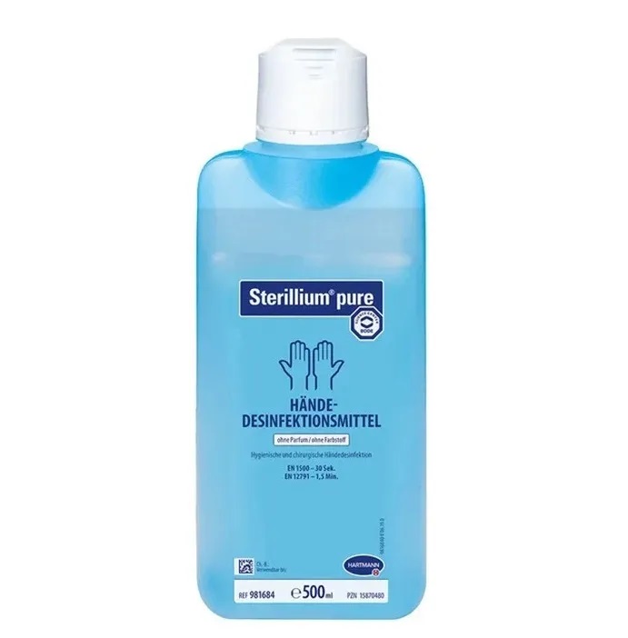 Pro hygienickou a chirurgickou dezinfekci rukou. Zejména vhodný pro všechny hygienicky relevantní obory ve zdravotnictví a v průmyslu, kde se klade zvláštní důraz na absenci barviv a vonných látek. Sterillium® pure je proto vhodný zejména pro uživatele s citlivou pokožkou a osoby s astmatem a atopickými onemocněními.