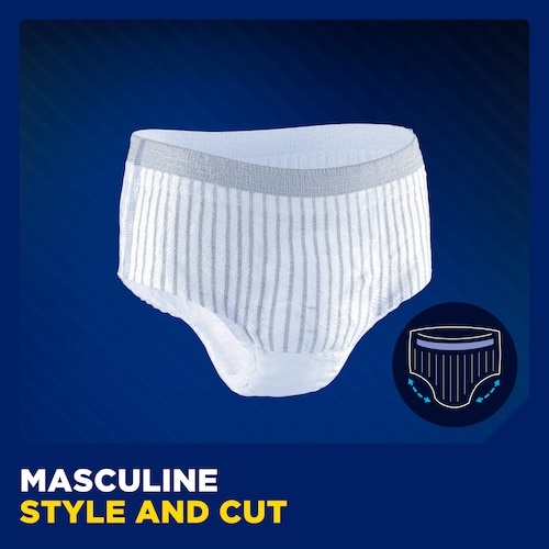Dvojité absorpční jádro s polymery, které v sobě okamžitě uzamknou moč, umístěné vpředu, kde je muži nejvíce potřebují