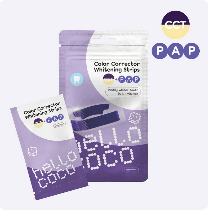 Tyto inovativní pásky kombinují dvě účinné technologie v jednom kroku. Fialové a modré pigmenty okamžitě neutralizují žluté podtóny zubů, takže úsměv působí bělejší ihned po aplikaci. Zároveň PAP (Phthalimidoperoxycaproic Acid) působí hloubkově na povrchu skloviny, redukuje skvrny a podporuje její přirozené zesvětlení – a to bez použití peroxidu.