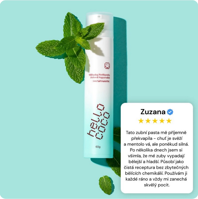 Hello Coco zubní pasta byla navržena pro každodenní péči o zuby s důrazem na přirozené bělení, ochranu skloviny a svěží dech. Díky pečlivě vybraným složkám jemně odstraňuje povrchové skvrny, aniž by poškozovala zuby nebo způsobovala citlivost.