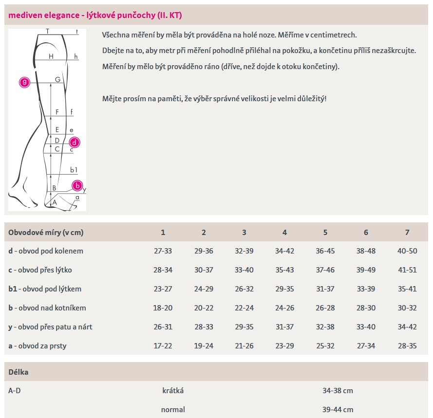 Kolekce kompresivních punčoch Mediven elegance je vyrobena z vyspělých materiálů a novou technologií pletení. Jedná se o kompresivní punčochu splňující nejvyšší požadavky. Kombinuje medicínskou účinnost s módními aspekty. Díky velmi jemné a transparentní pletenině jsou stěží rozlišitelné od běžných silonek.