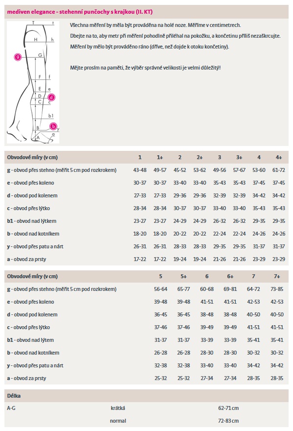 Punčochy v druhé kompresní třídě (II.KT odpovídá tlaku 23-32 mm/Hg) mají