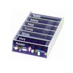 Praktický a modrní dávkovač léků na celý týden. Přihrádky na jednotlivé dny lze od sebe oddělit. Jsou rozděleny na 5 políček, ranní je o něco větší než ostatní. Kvalitní materiál zabezpečí ochranu před světlem i UV paprsky. Snadná manipulace.